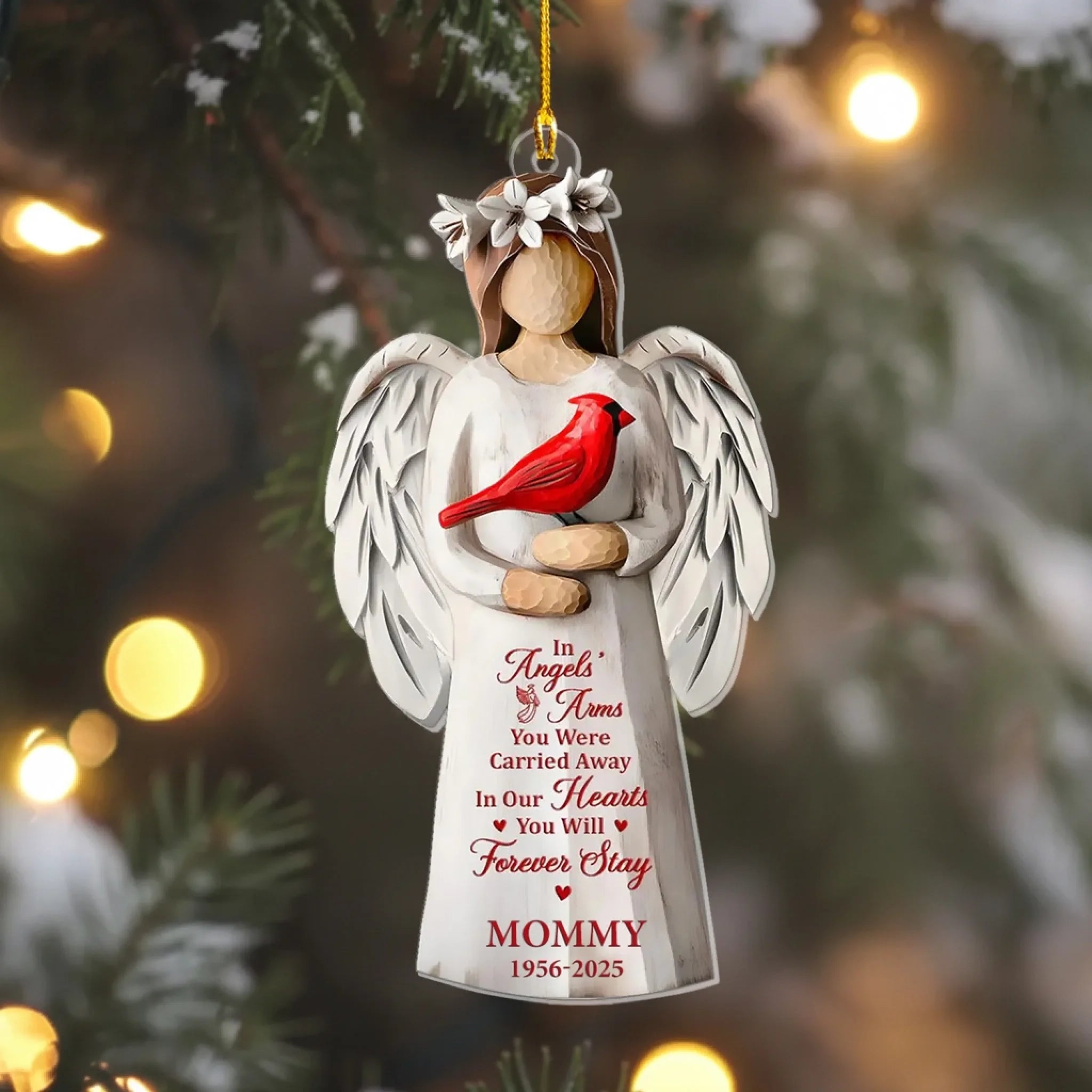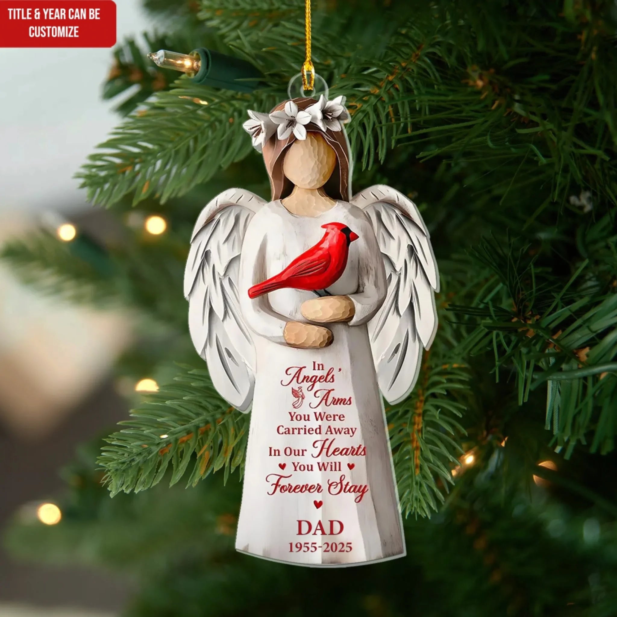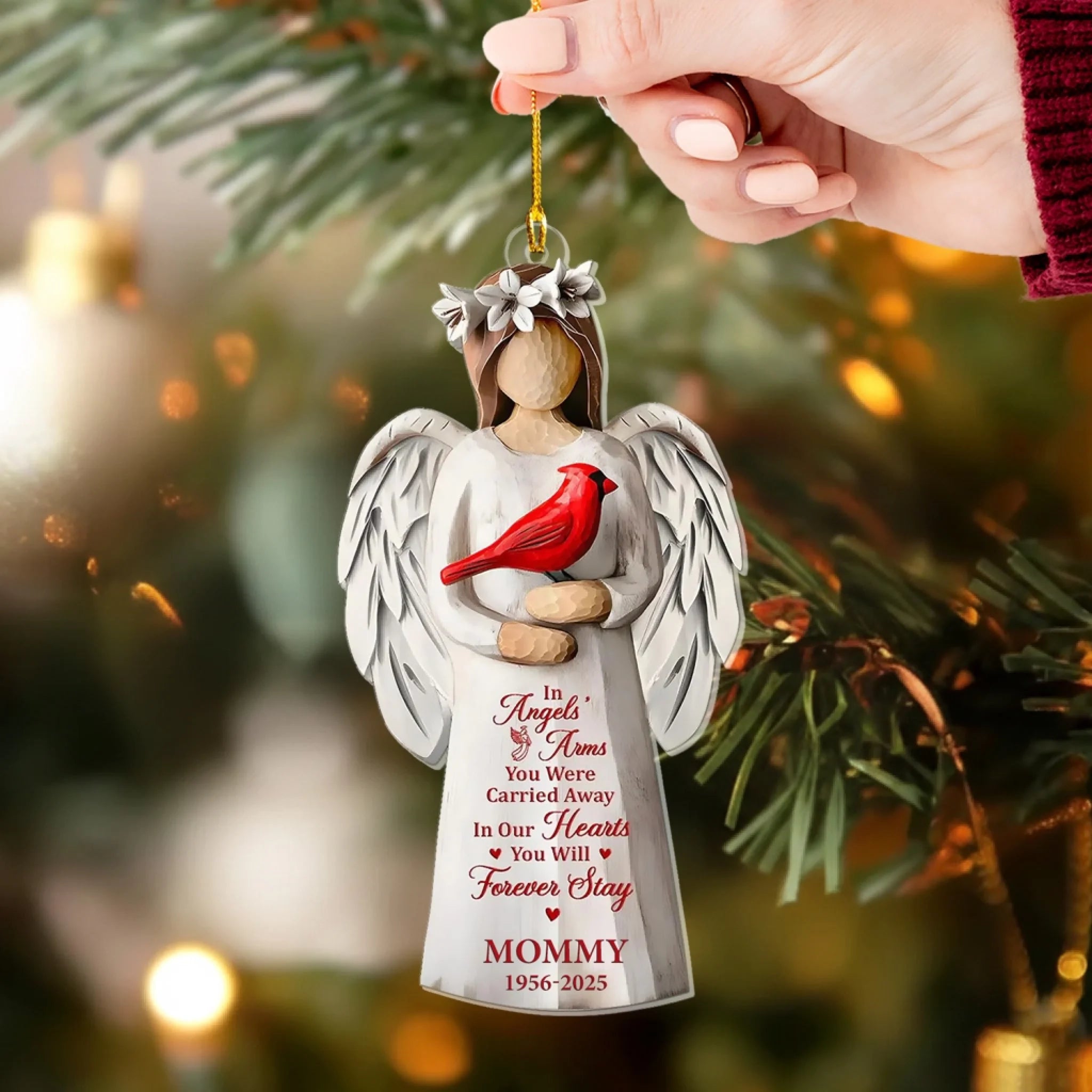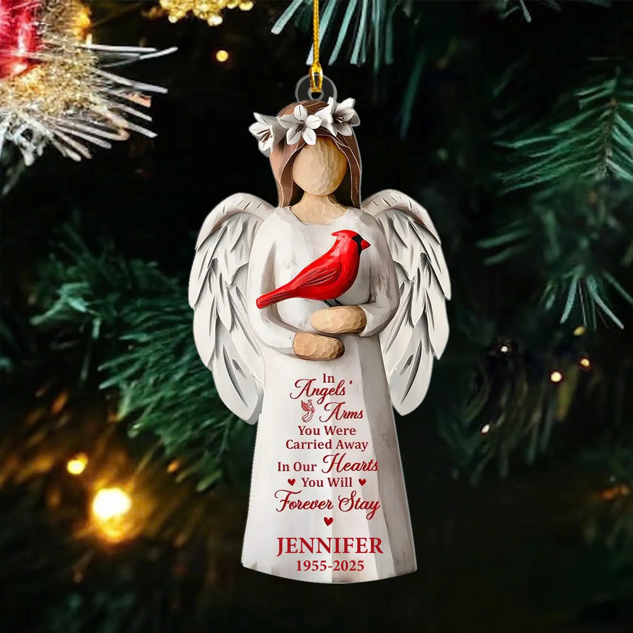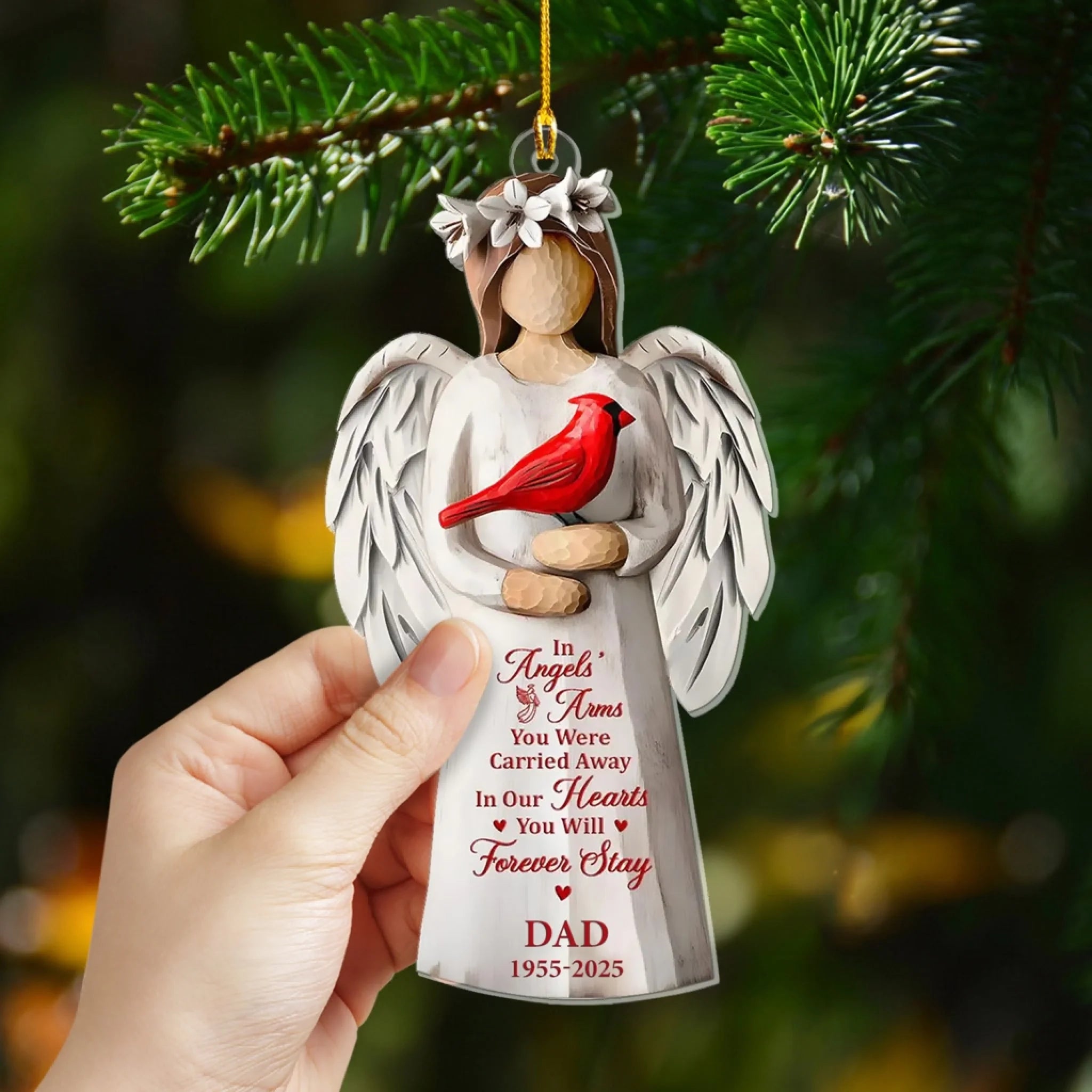 Angels Arms You Were Carried Away In Our Hearts - Personalized Acrylic Ornament, Memorial Angel Cardinal Ornament, Gift for Loss of a Loved One