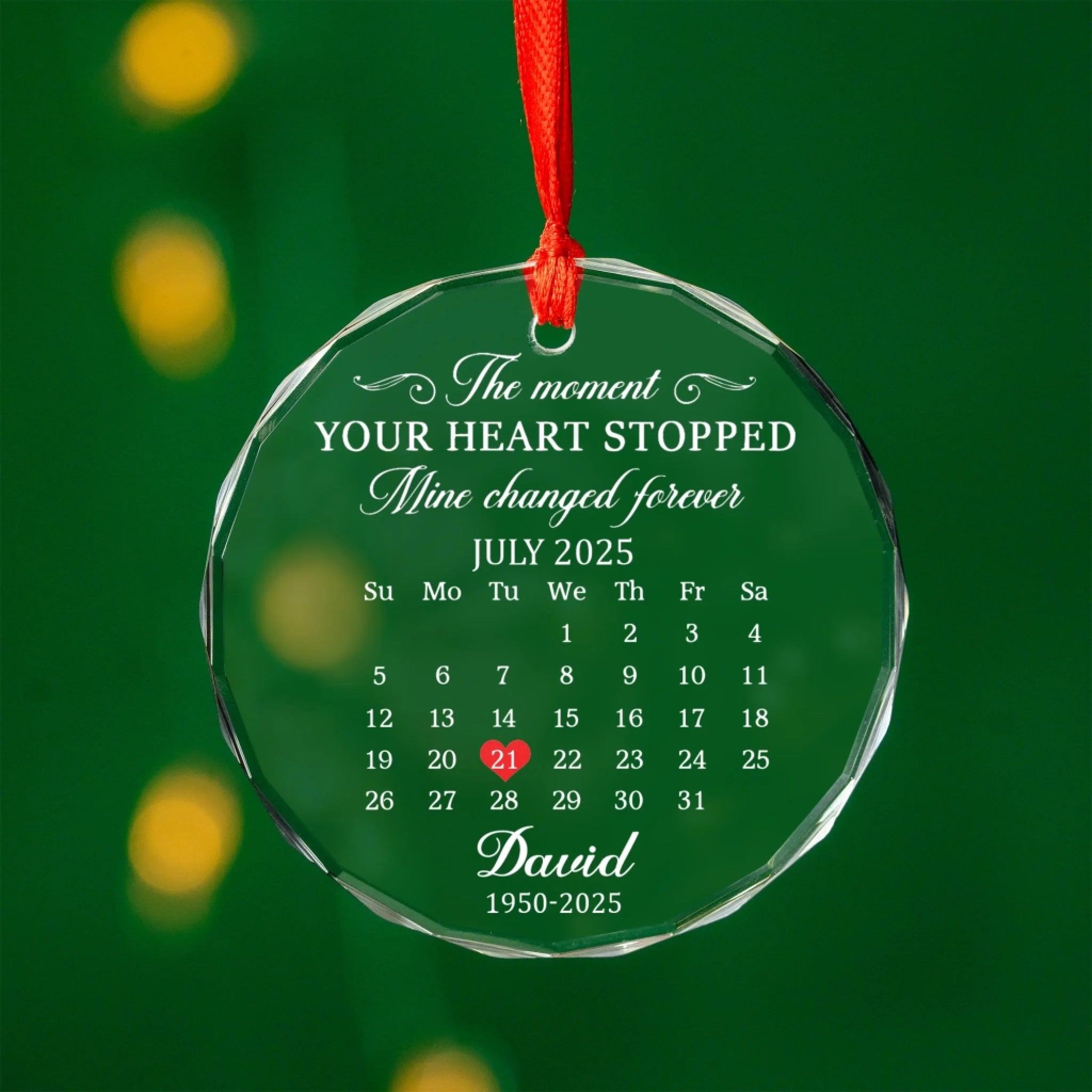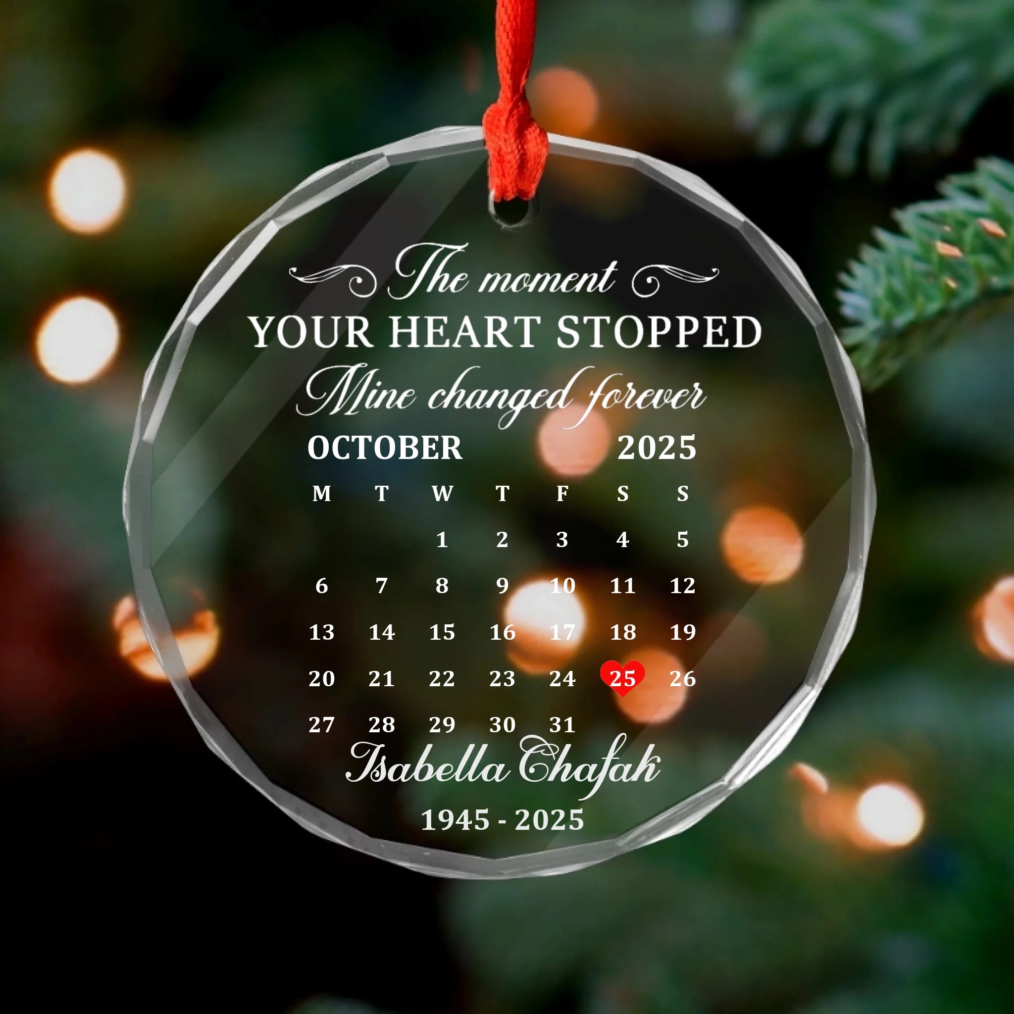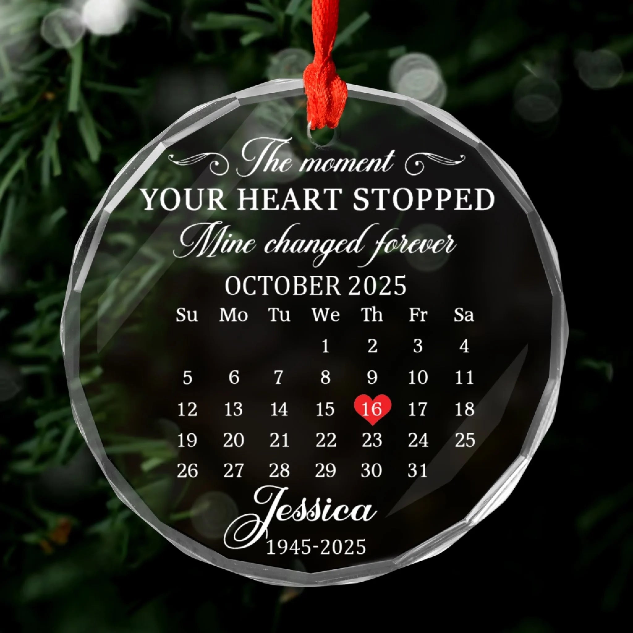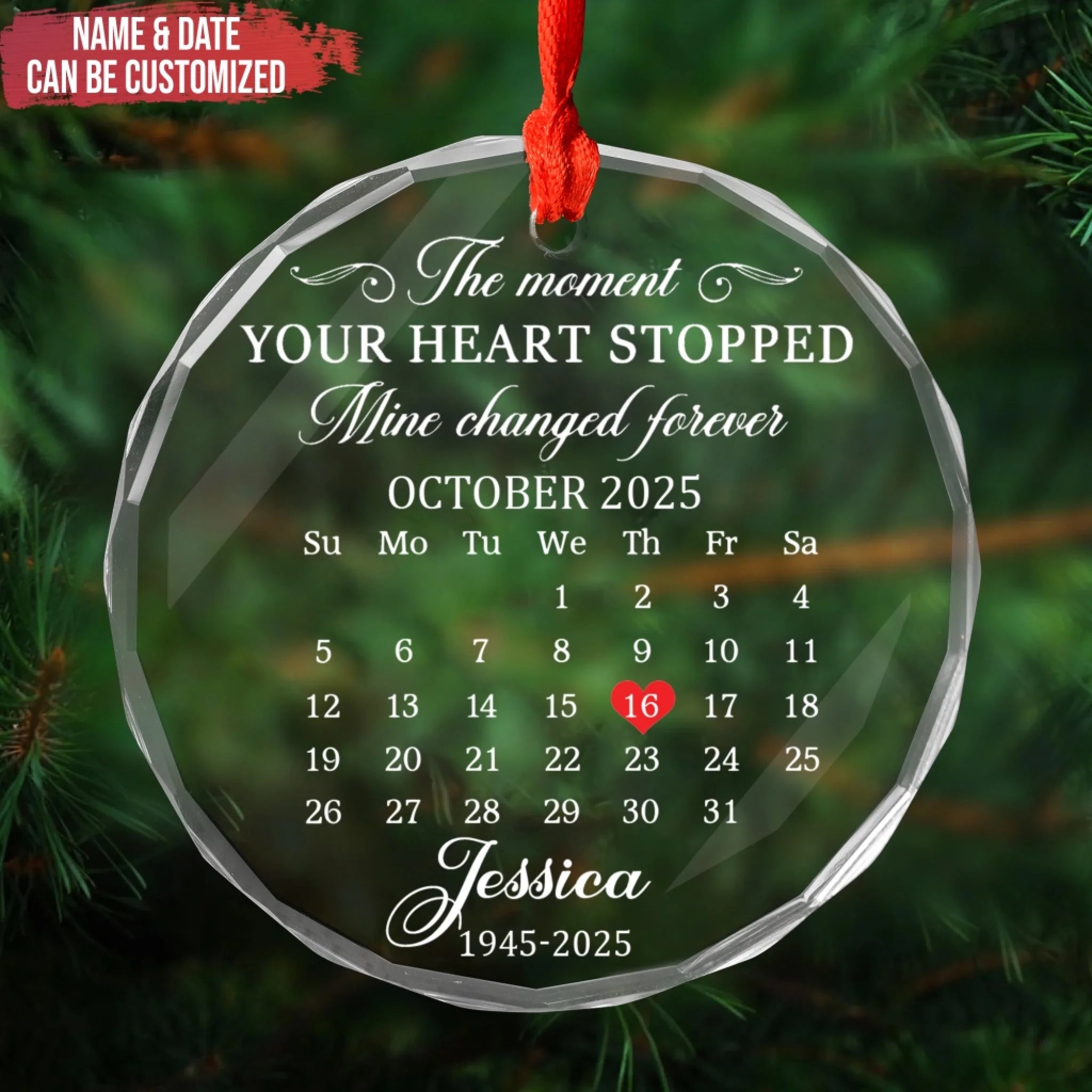 The Moment Your Heart Stopped Mine Changed Forever - Personalized Glass Ornament, Memorial Gift, Sympathy Gift For Loss Of Love One