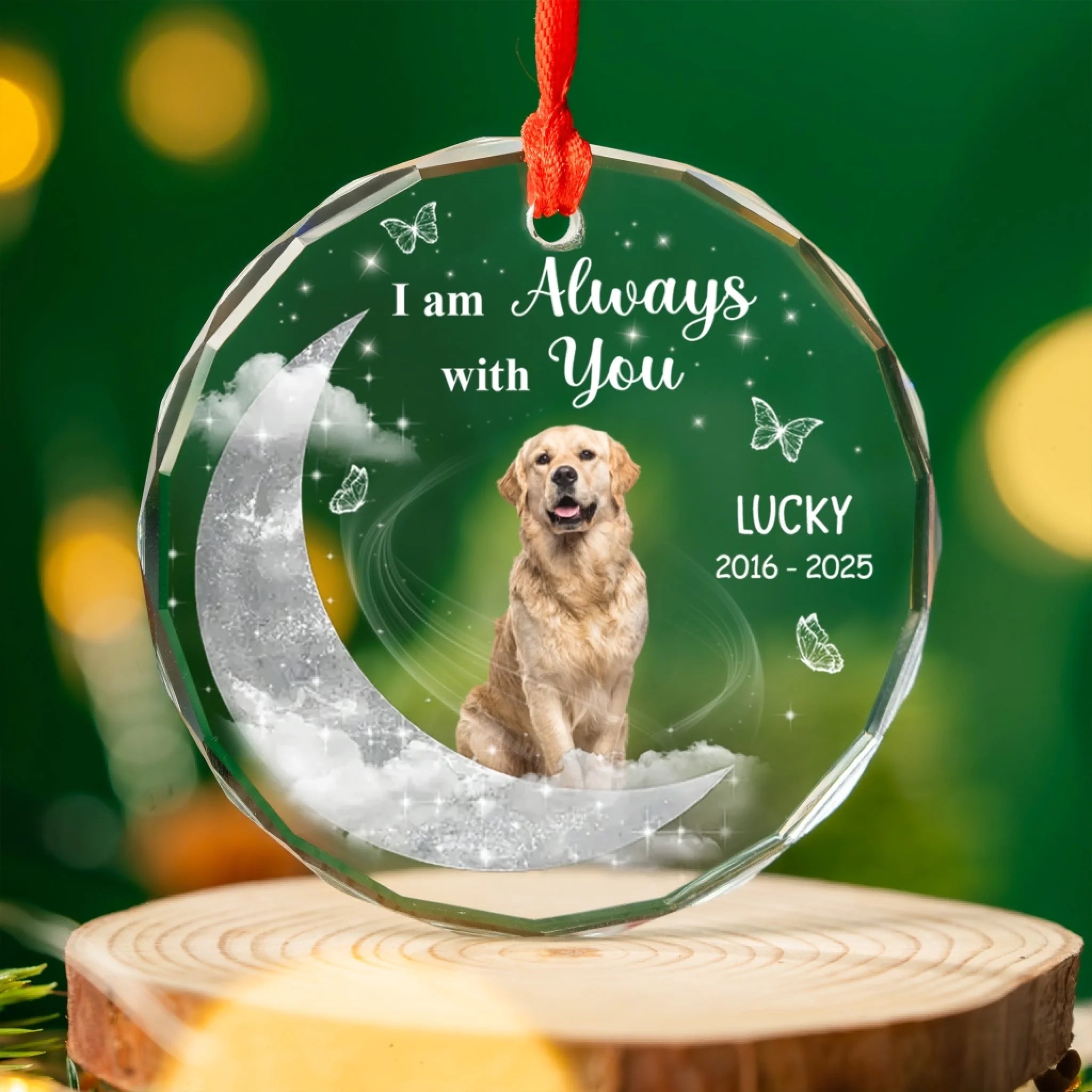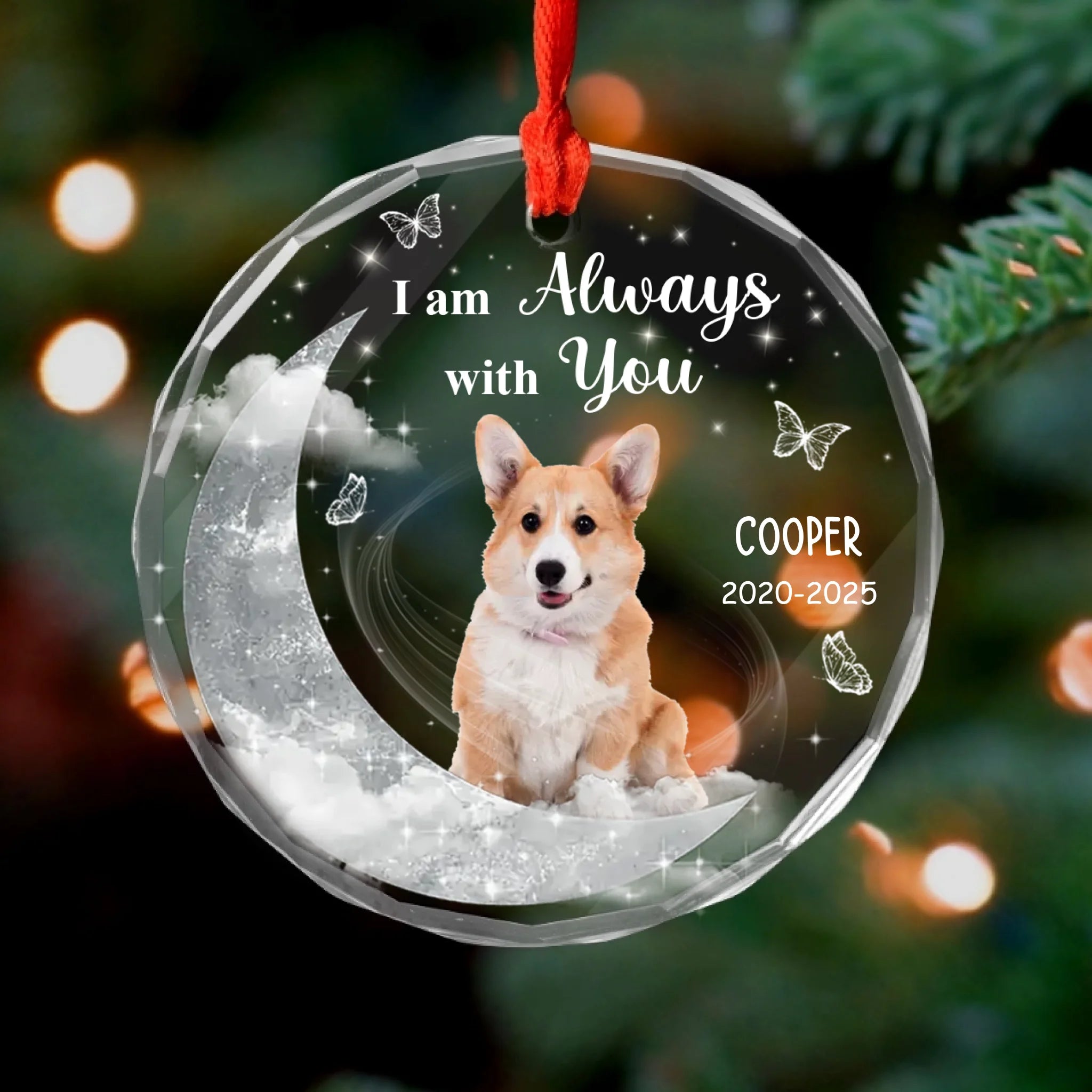 Custom Photo On Moon, I Am Always With You - Personalized Glass Ornament, Memorial Gift
