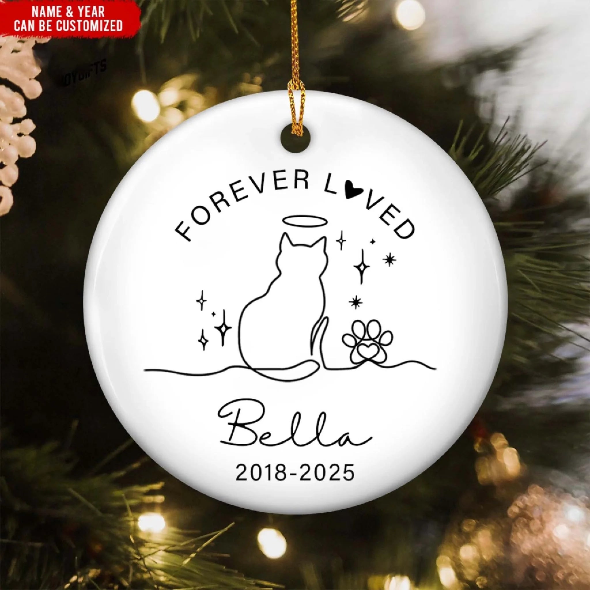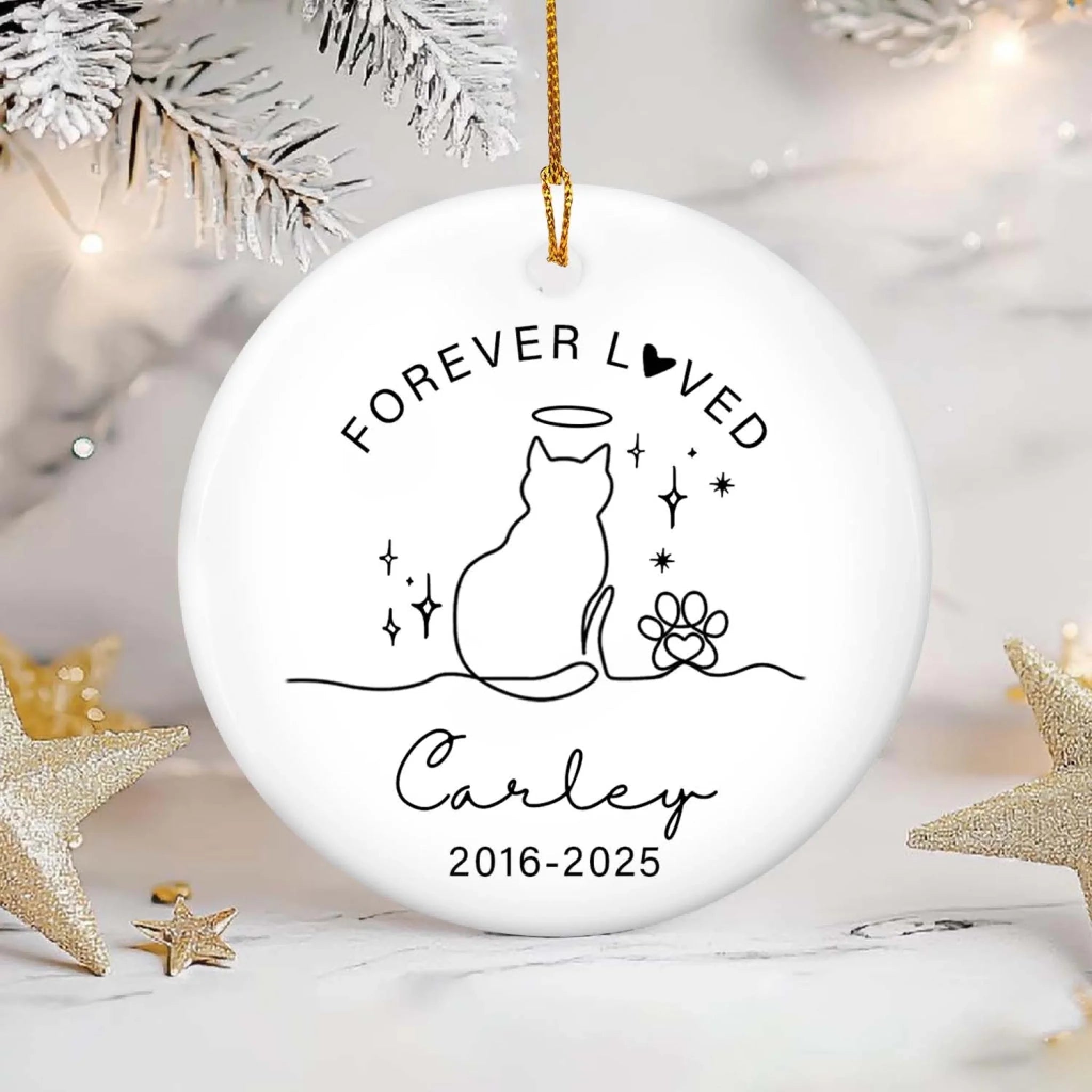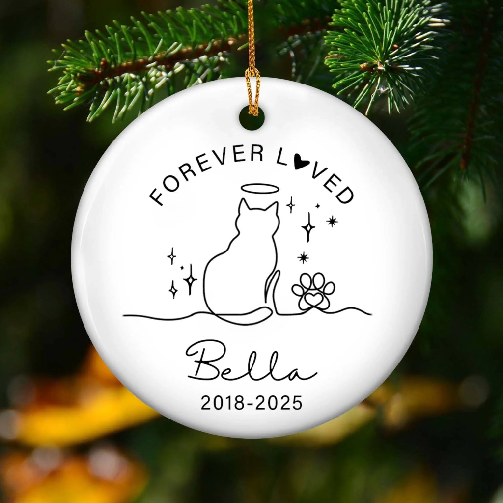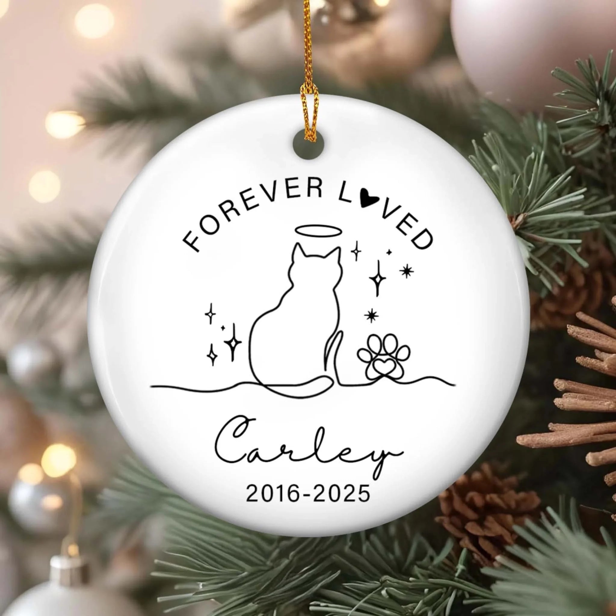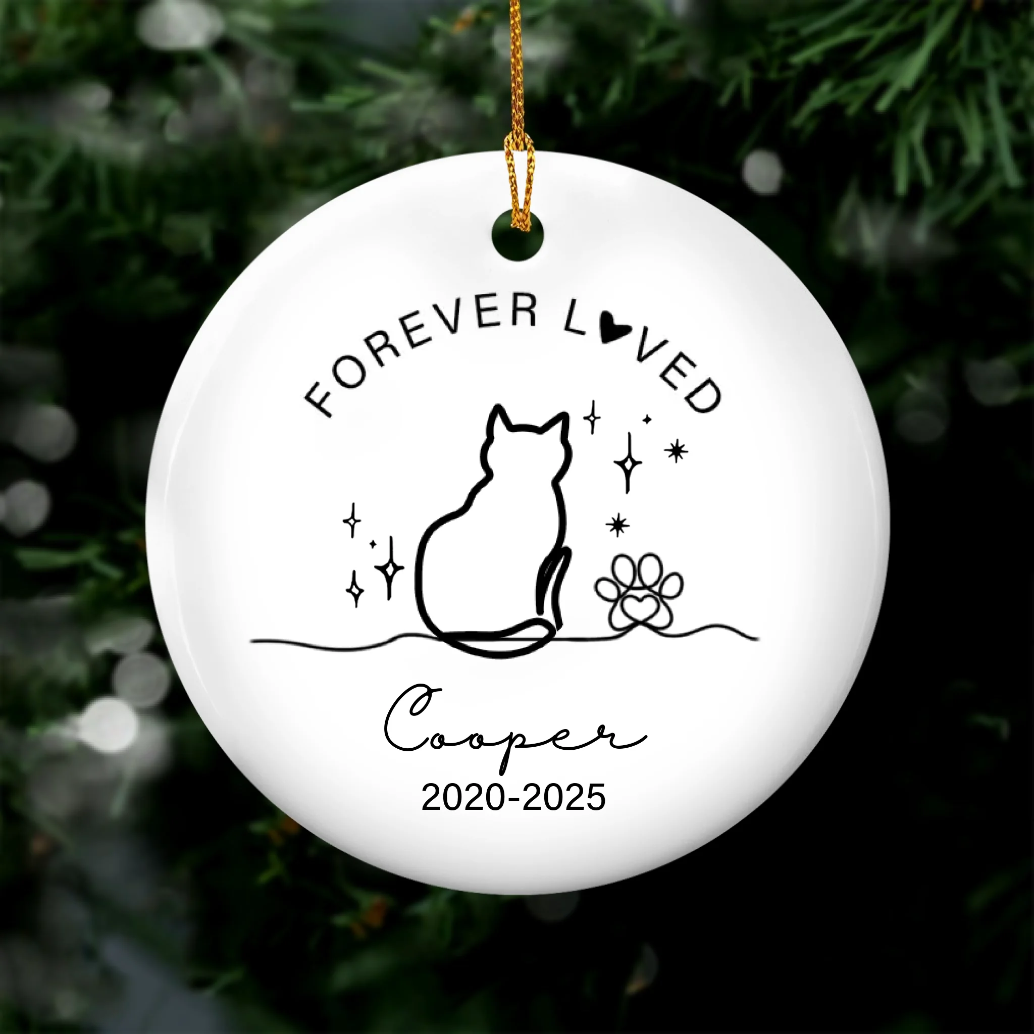 Forever Loved Cat Memorial Ornament - Personalised Ceramic Ornament, Sympathy Gift For Loss Of Cat